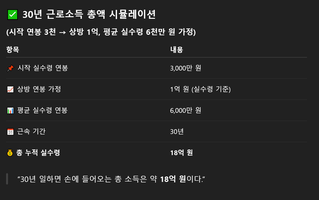 님 덧셈소득 예측좀요 30년 근로한다고 하고 전체 평균 실수령 대한민국 근로자 연봉 상방을 1억이라고 가정
